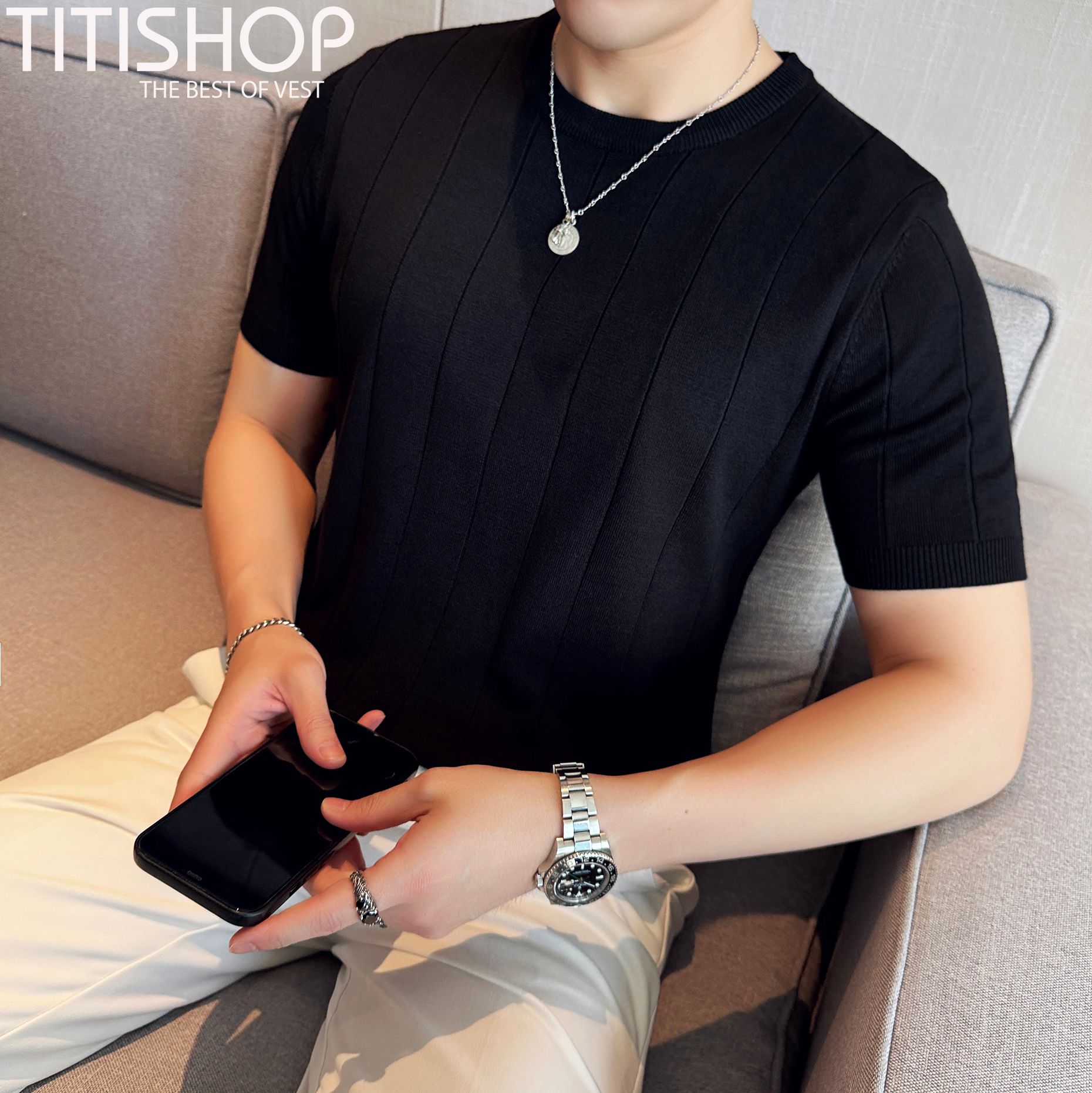 Áo thun Titishop  là một lựa chọn hoàn hảo dành cho các chàng trai bởi thiết kế kiểu dáng đơn giản mà vẫn trẻ trung nhờ cách phối hợp màu và những đường sọc một cách khéo léo.