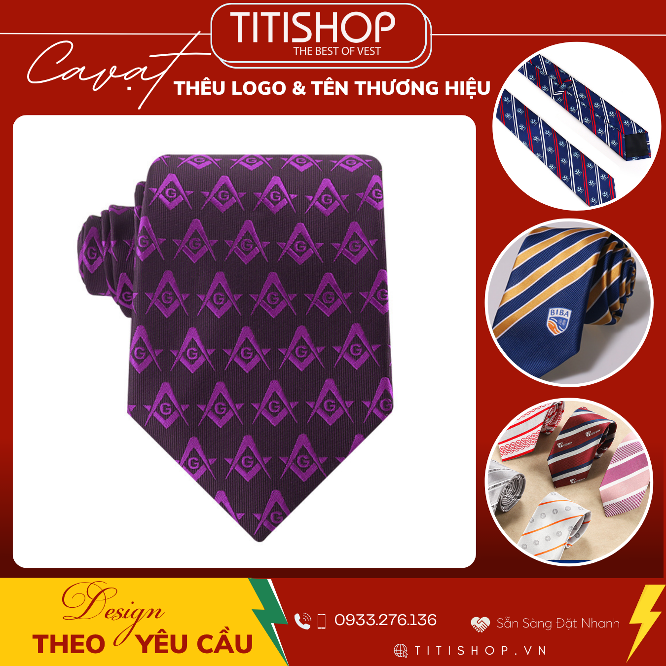 Chúng tôi nhận làm từ số lượng nhỏ lẻ đến đơn hàng lớn cho các sự kiện, chương trình hội nghị, đồng phục công ty, quà tặng tri ân khách hàng, nhân viên... Đặc biệt, thêu trực tiếp lên cà vạt, áo sơ mi, áo vest, đồng phục theo yêu cầu riêng giúp tăng tính chuyên nghiệp và đồng bộ.