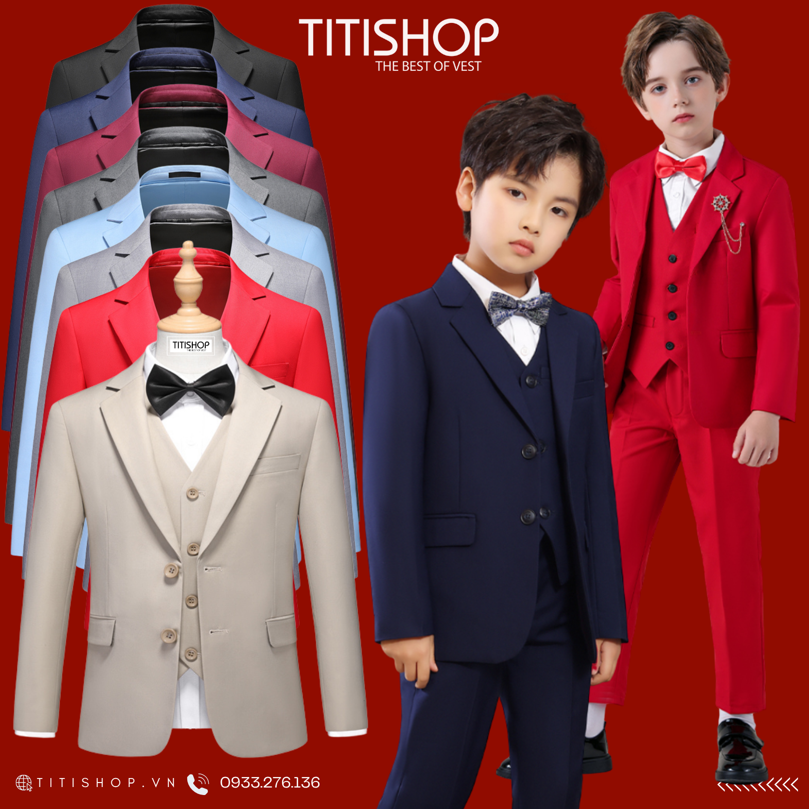 Đa dạng mẫu mã, size số, TITISHOP đáp ứng mọi nhu cầu của các mẹ. Từ những buổi tiệc sang trọng đến những sự kiện quan trọng, bé trai nhà bạn luôn nổi bật và tự tin. Đến ngay TITISHOP để được tư vấn và chọn lựa những bộ vest phù hợp nhất nhé!"