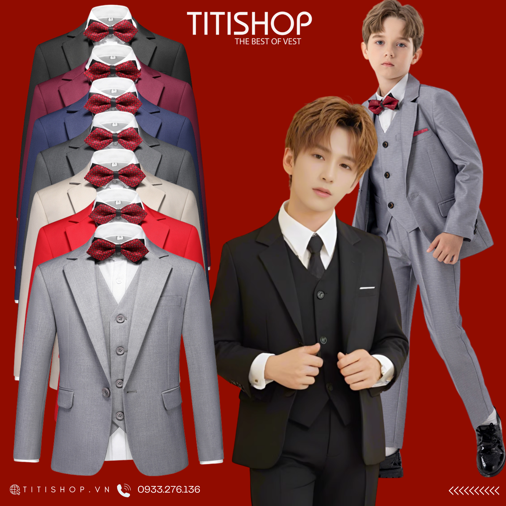 Đa dạng mẫu mã, size số, TITISHOP đáp ứng mọi nhu cầu của các mẹ. Từ những buổi tiệc sang trọng đến những sự kiện quan trọng, bé trai nhà bạn luôn nổi bật và tự tin. Đến ngay TITISHOP để được tư vấn và chọn lựa những bộ vest phù hợp nhất nhé!"