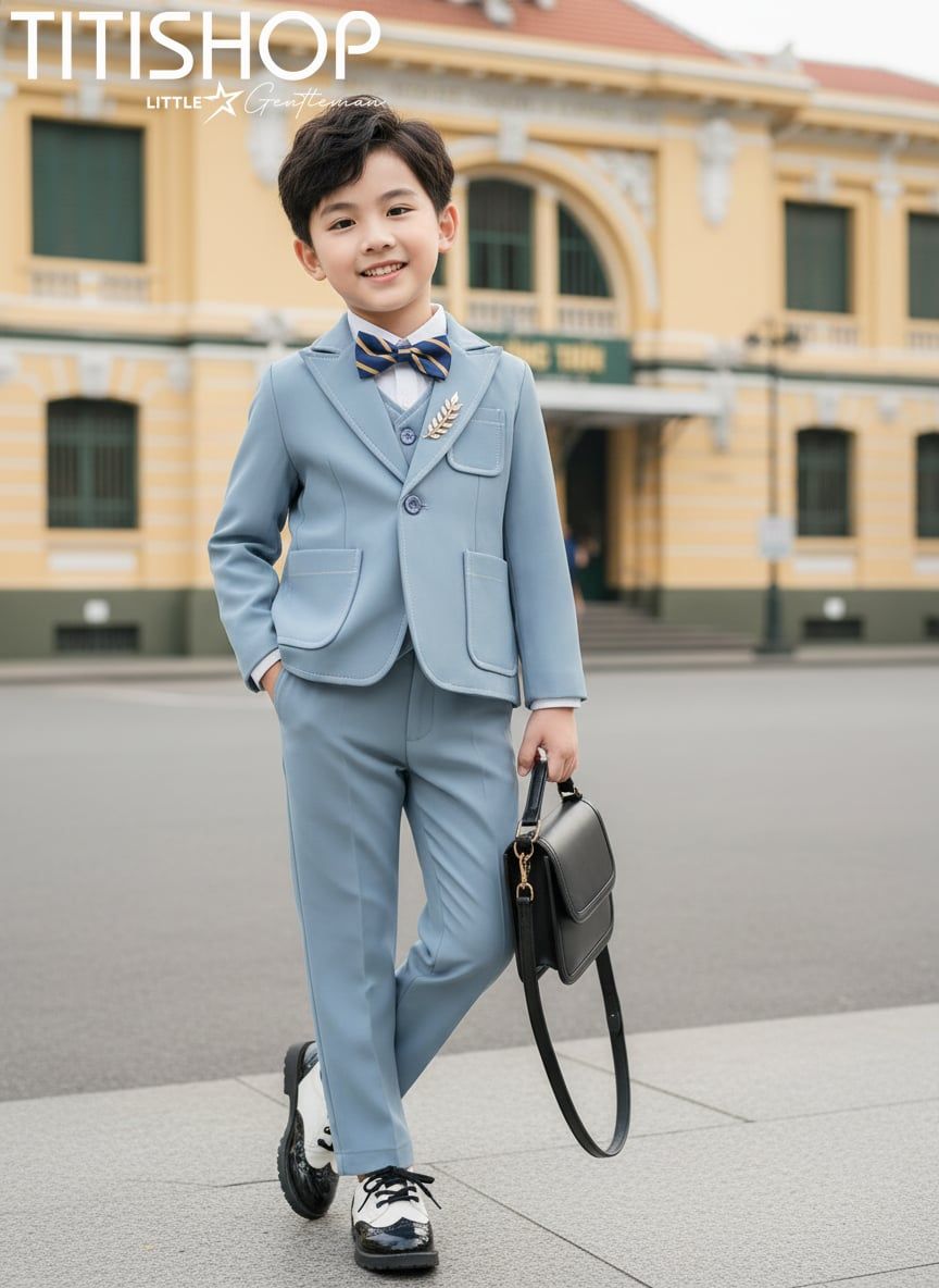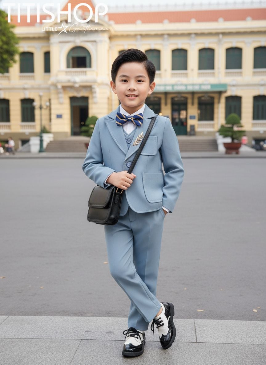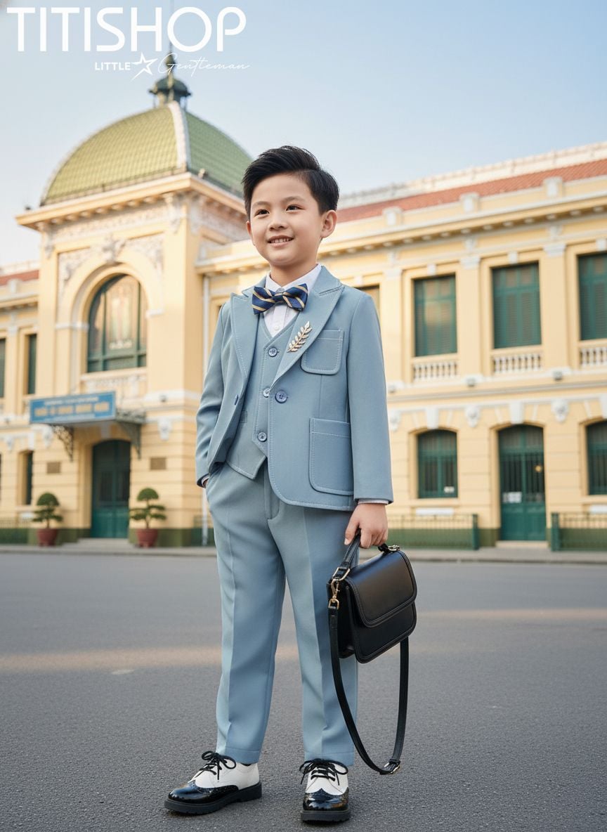 Không chỉ chú trọng về thẩm mỹ, chất liệu vải tại TITISHOP cũng được lựa chọn kỹ lưỡng nhằm mang lại sự thoải mái tối đa cho bé. Vải mềm mại, thoáng mát, đứng form nhưng vẫn nhẹ nhàng để bé có thể mặc trong nhiều giờ mà không bị khó chịu. Những chi tiết như khăn cài túi, nơ, cà vạt, áo sơ mi đi kèm cũng được phối hợp tinh tế để tạo nên tổng thể hoàn chỉnh, giúp bé trở nên nổi bật và phong cách hơn trong mọi khung hình.