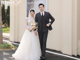 Đây là một bộ tuxedo cưới màu trắng vượt thời gian. Sự tương phản của áo khoác trắng cùng sơ mi, cà vạt nơ đen và quần đen khiến hình ảnh các chàng rể tinh tế, lịch lãm không bao giờ lỗi mốt.